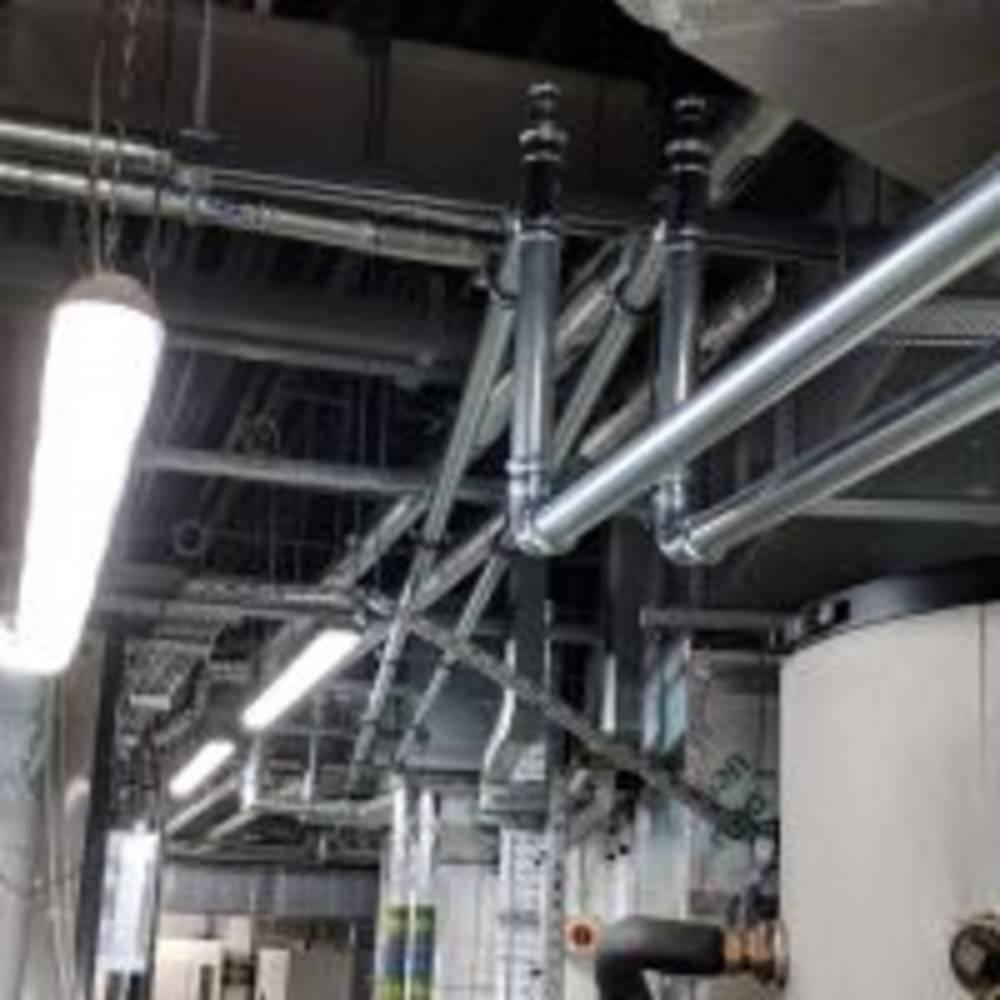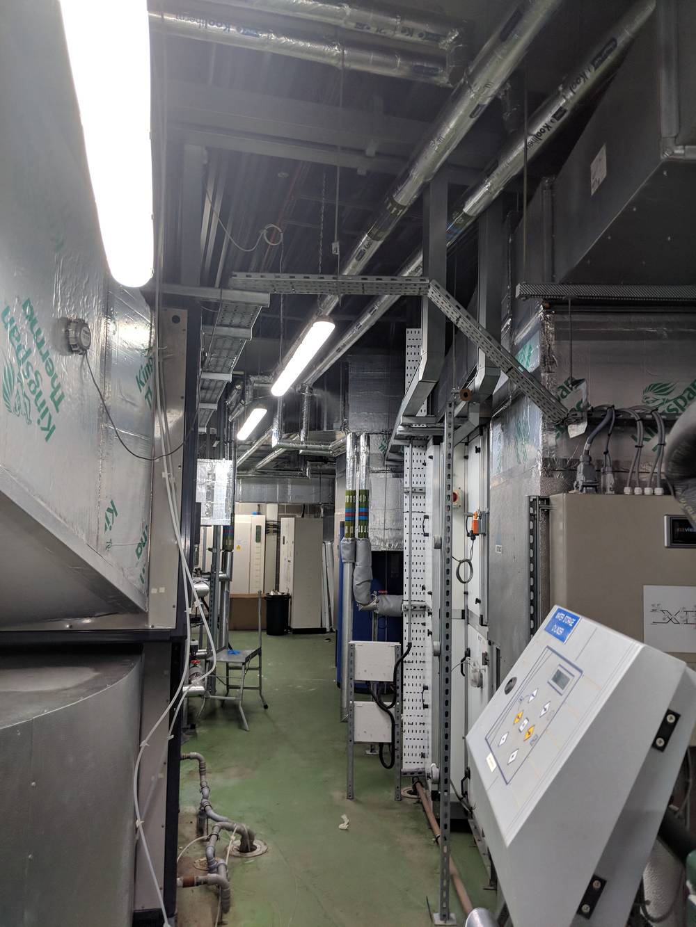 Commercial Chilled and heating supply to Air Handling Unit (AHU) to feed a 12 storey office block in Leeds. 108mm chilled and 76mm heating all done in stainless steel crimp and H frame for electrical