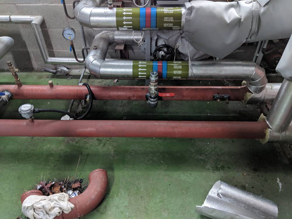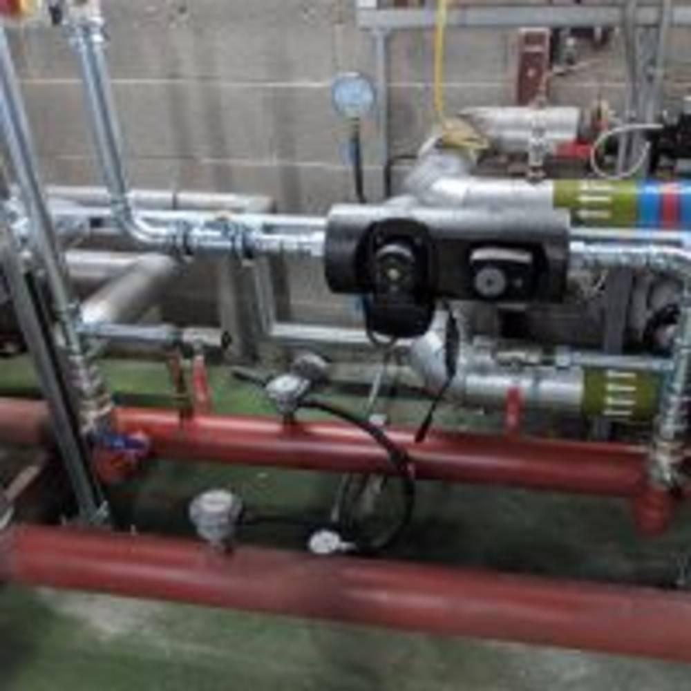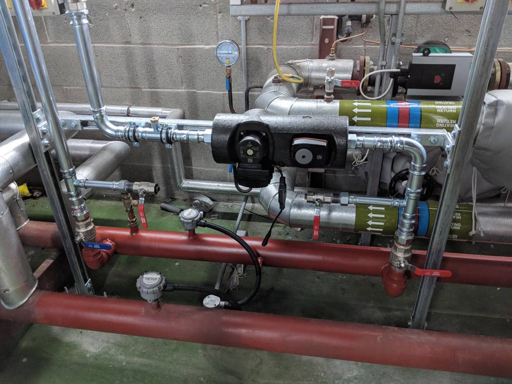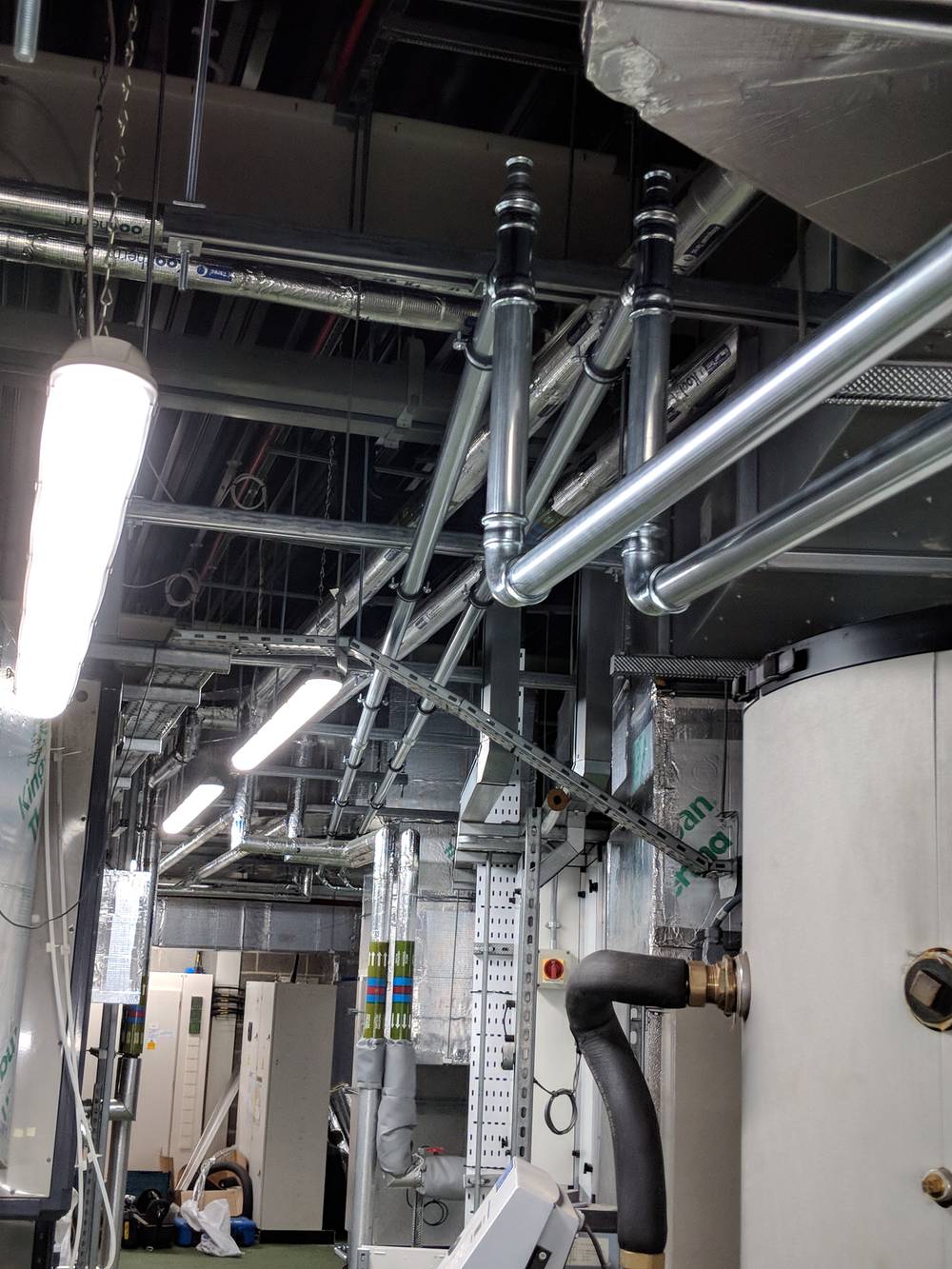 Commercial Chilled and heating supply to Air Handling Unit (AHU) to feed a 12 storey office block in Leeds. 108mm chilled and 76mm heating all done in stainless steel crimp and H frame for electrical