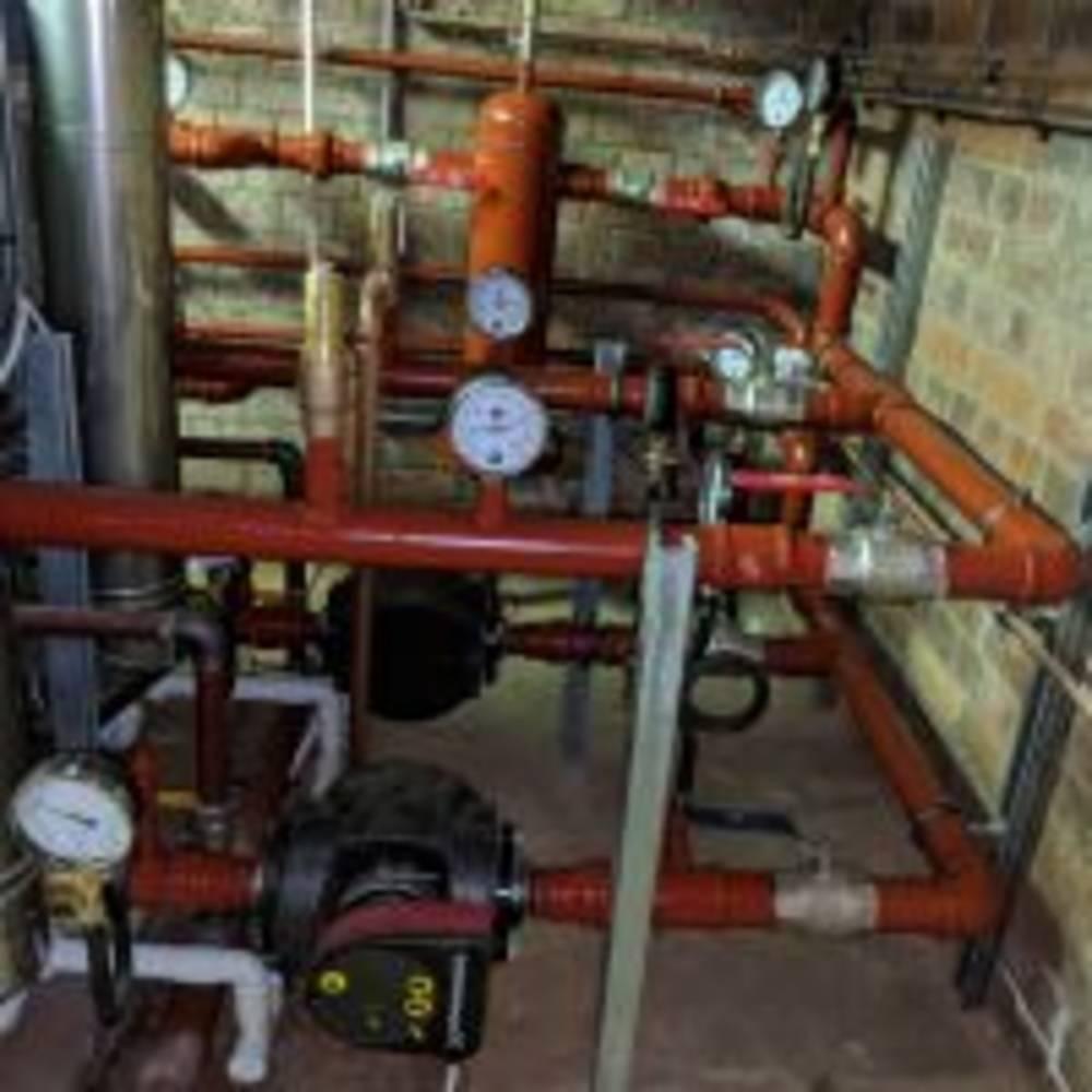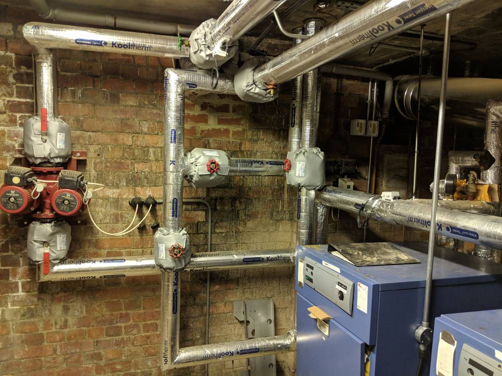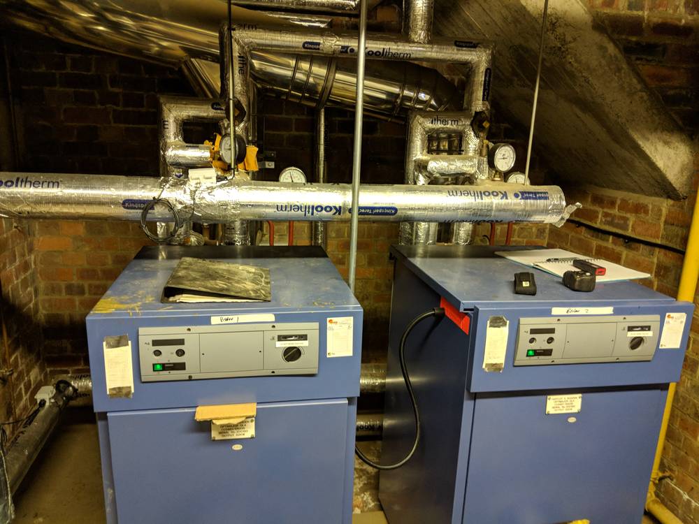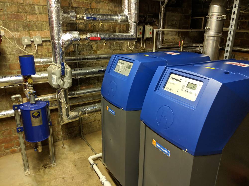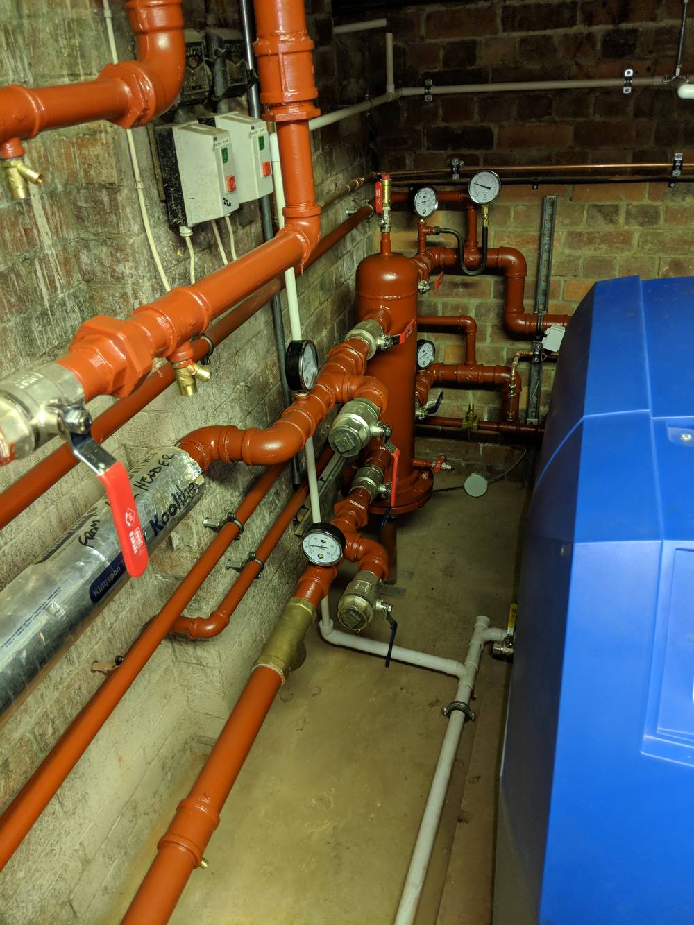 Removed old inefficient gas boilers and replaced with new A rated Hamworthy with fabricated low loss header and heat recovery injection on return.